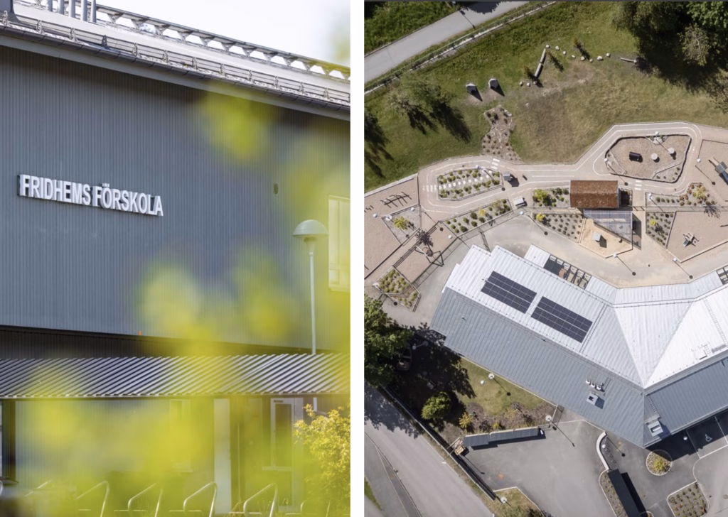 Hemsö har utvecklat Fridhems förskola i Kungälv. Den svanencertifierade förskolan färdigställdes 2023 och har plats för 144 barn.